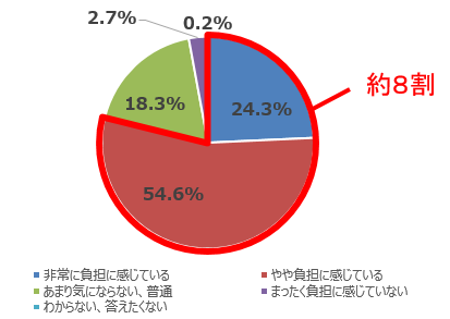4.「自動車保険料が負担」と感じているのは約8割と、大半が負担感のある結果に!見直しニーズが顕在化!